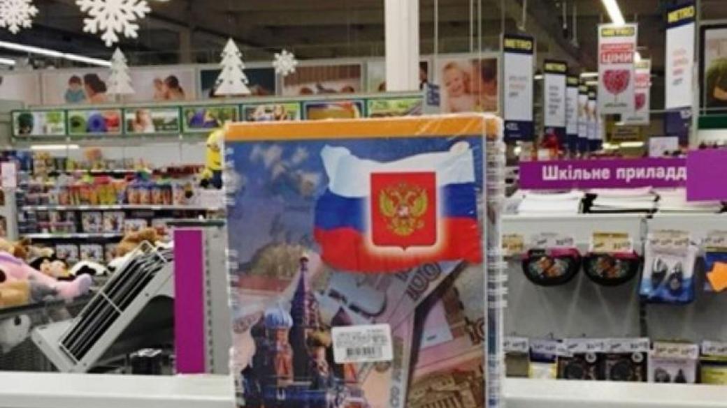 В гипермаркете Метро в городе Днепре продают тетради с символикой России.