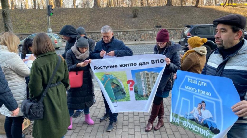Несколько десятков переселенцев собрались под стенами Кабинета министров с требованием разблокировать программу кредитования доступного жилья для ВПО и участников АТО.