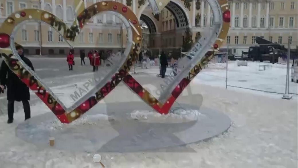 В российском Санкт-Петербурге на Дворцовой площади, установили инсталляцию, посвященную "побратимству" Мариуполя и Санкт-Петербурга.