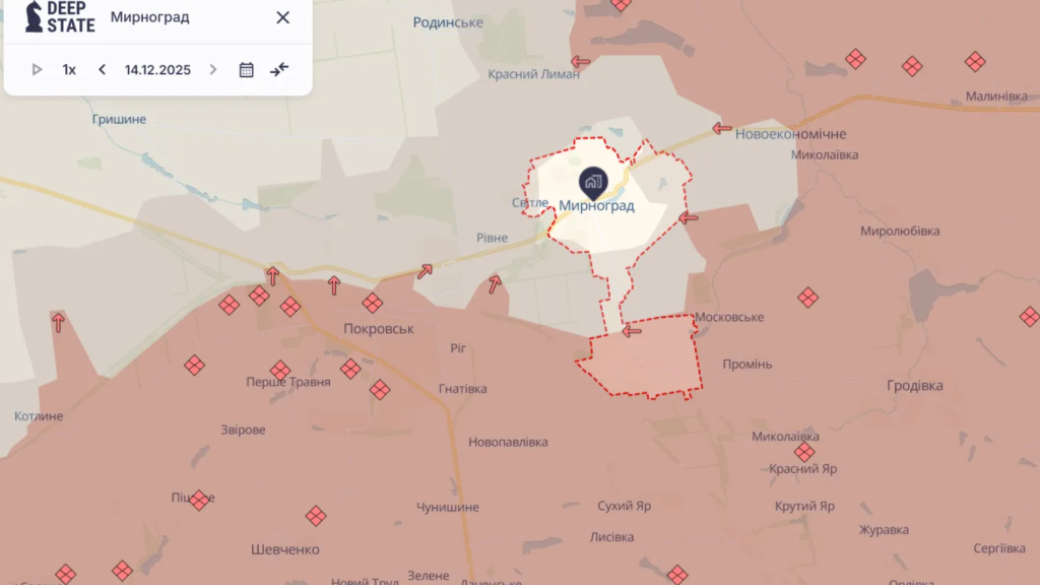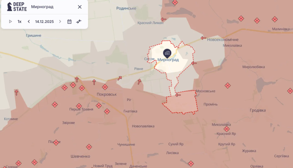 По его словам, в Мирнограде противник усиливает давление на юго-восточные районы города. Также фиксируются единичные случаи инфильтрации врага на подступах к «верхнему» Мирнограду.