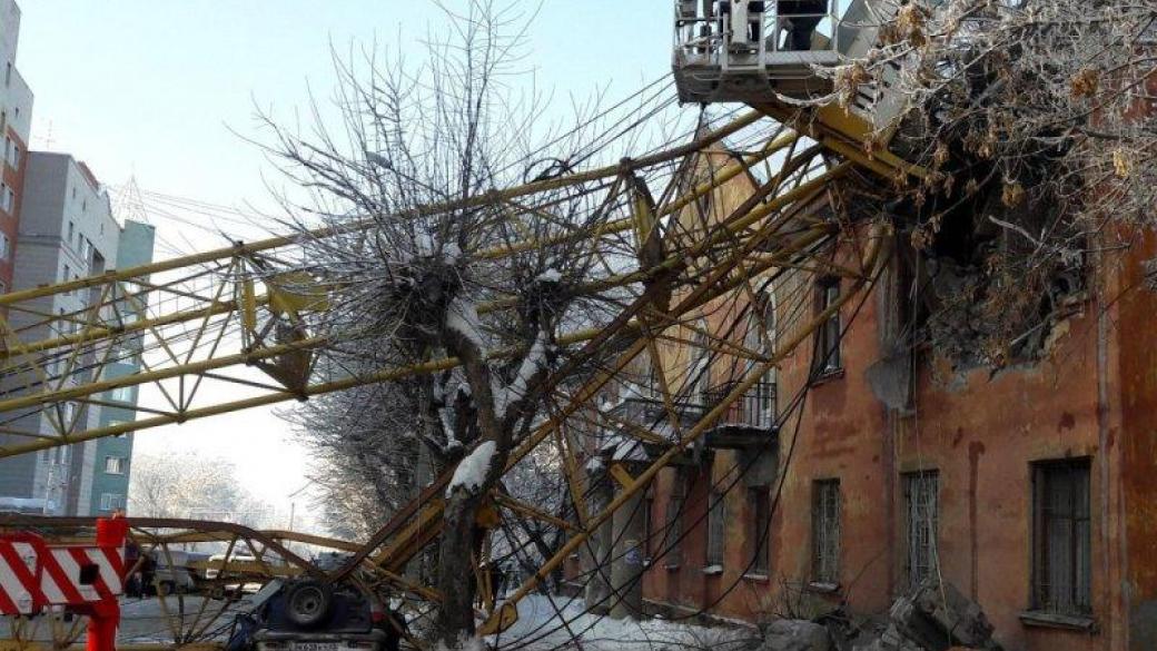 В Кирове на жилой двухэтажный дом упал башенный кран.