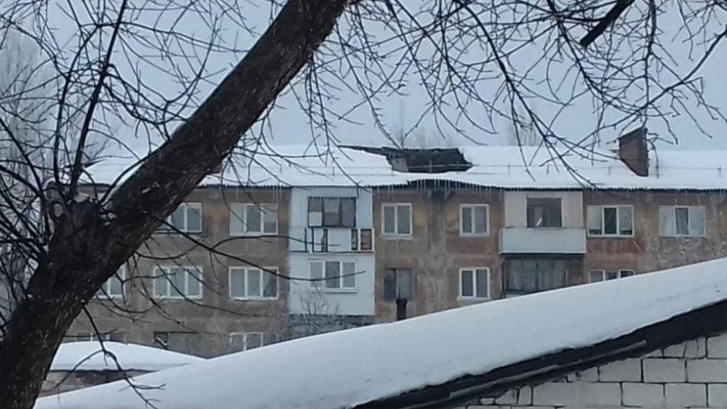 Вследствие большого скопления снежной массы произошло обрушение крыши в Кировском районе, по адресу бульвар 8 сентября.