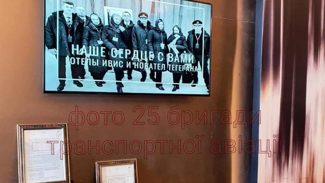 В холле иранского отеля, из которого экипаж самолета МАУ отправился в свой последний рейс, разместили памятное фото. Об этом, а странице «Бригада транспортной авиации» в Facebookсообщил командир экипажа самолета Ил-76МД, которым в Украину доставили тела погибших, полковник Дмитрий Мимриков.