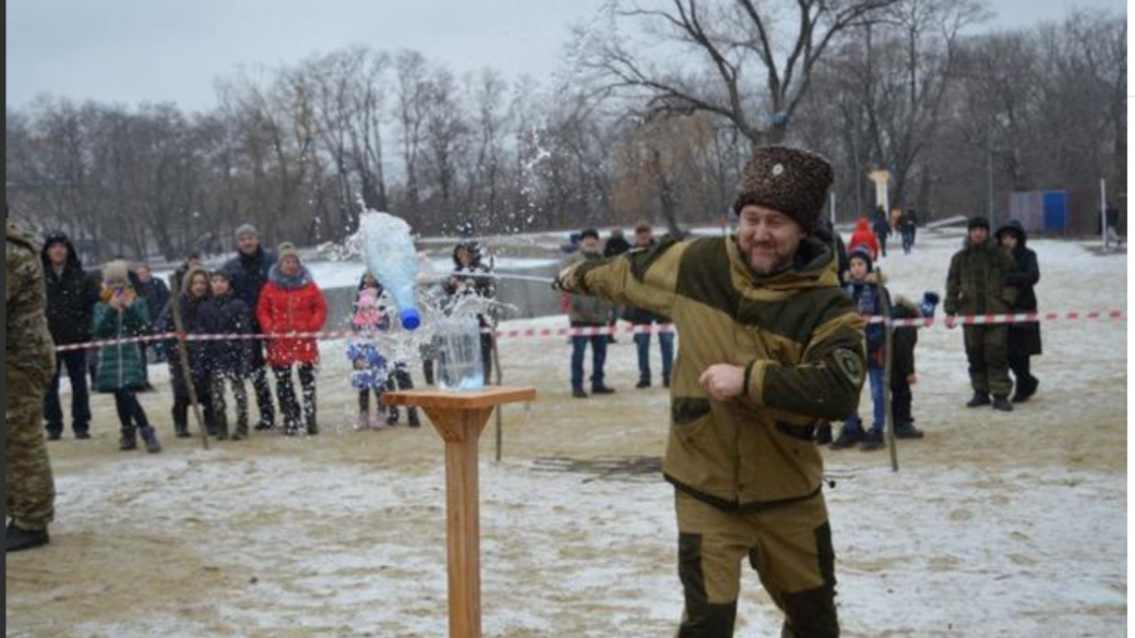 После церковной службы и ныряния в воду, во временно неподконтрольной Брянке Луганской области провели казачий турнир по рубке шашками, сообщают подконтрольные «республике» СМИ.