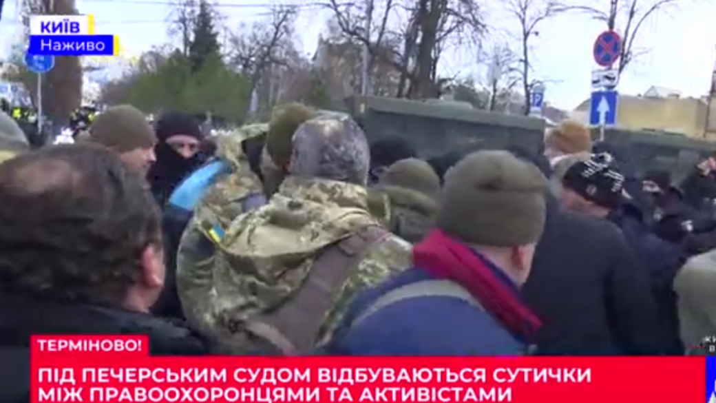 Паблики напоминают, что в 14:00 должно начаться заседание, где огласят меру пресечения Порошенко по угольному делу. По словам очевидцев, конфликт под судом начался из-за того, что протестующие хотели развести огонь в бочках, чтобы согреться.