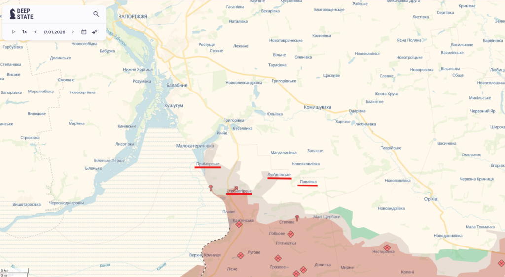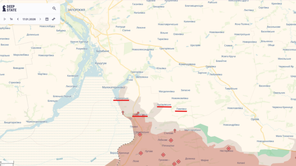 Российские войска продолжают попытки проникновения в районе поселка Степногорск Запорожской области, однако эти усилия не имеют длительного успеха. Об этом сообщили аналитики украинского OSINT-сообщества DeepState, пишет Зеркало недели.