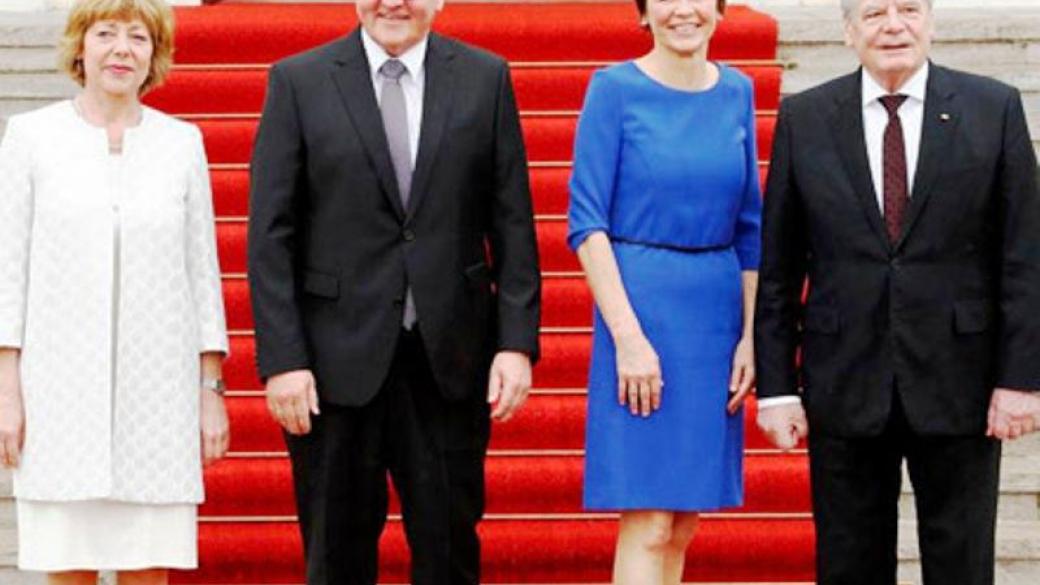 По информации, перед официальной церемонией предыдущий президент Йоахим Гаук со своей женой Даниэлой Шадт встретили Штайнмайера и будущую первую леди Эльке Бюденбендер на лестнице перед дворцом.