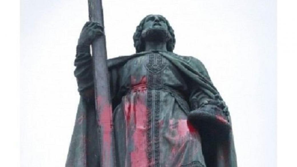 В столице Украины неизвестные злоумышленники облили красной краской памятник князю Владимиру Великому.