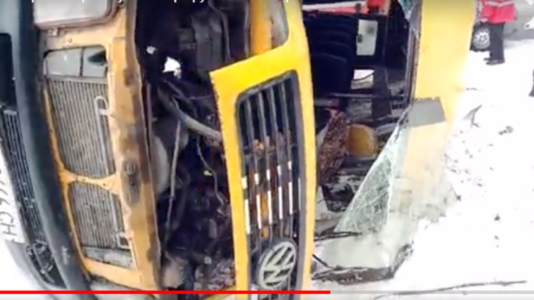 В Запорожье на заснеженной дороге перевернулось маршрутное такси, в котором в этот момент находилось 18 пассажиров.