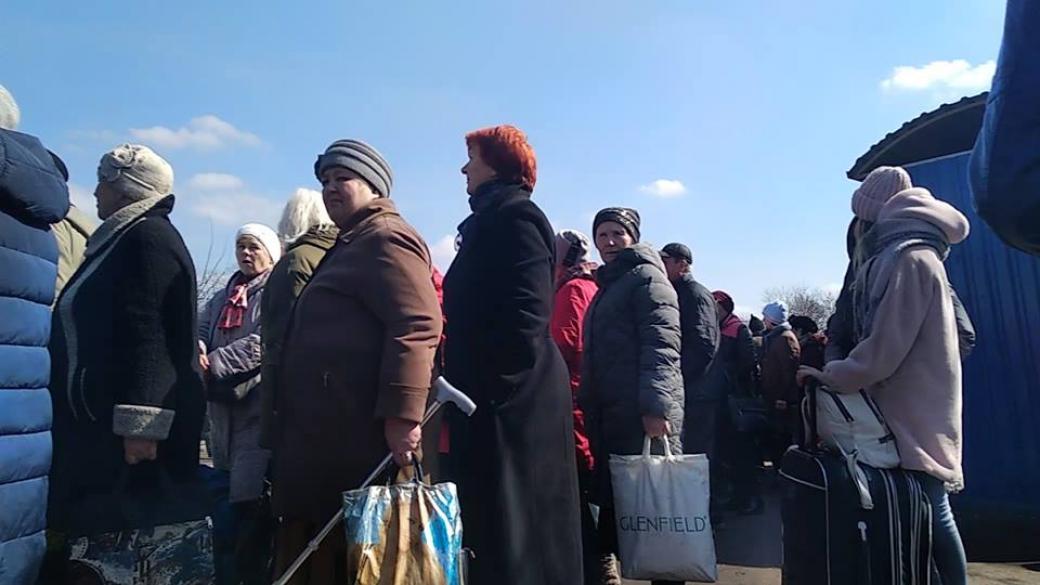 Как отмечает блогер, около 12:00 на остановке «Шахта «Кочегарка» желающих доехать до блокпоста немного, однако, уже на Никитовском рынке число пассажиров заметно возросло. По словам Светлова, возле самого блокпоста его неприятно удивила огромная очередь, увидев которую, он решил отложить поездку: