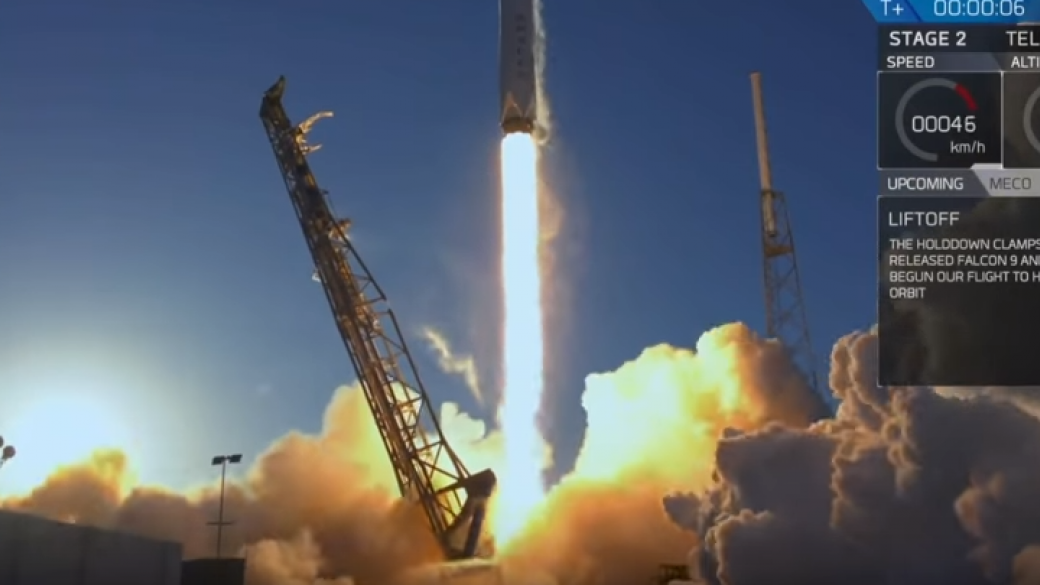 Telegram-канал 360tv отмечает: «Через 3 минуты после старта произошло штатное отделение первой ступени, а уже через 6 минут ступень приземлилась на баржу под названием „Of Course, I Still Love You“, которая находится в Атлантическом океане».