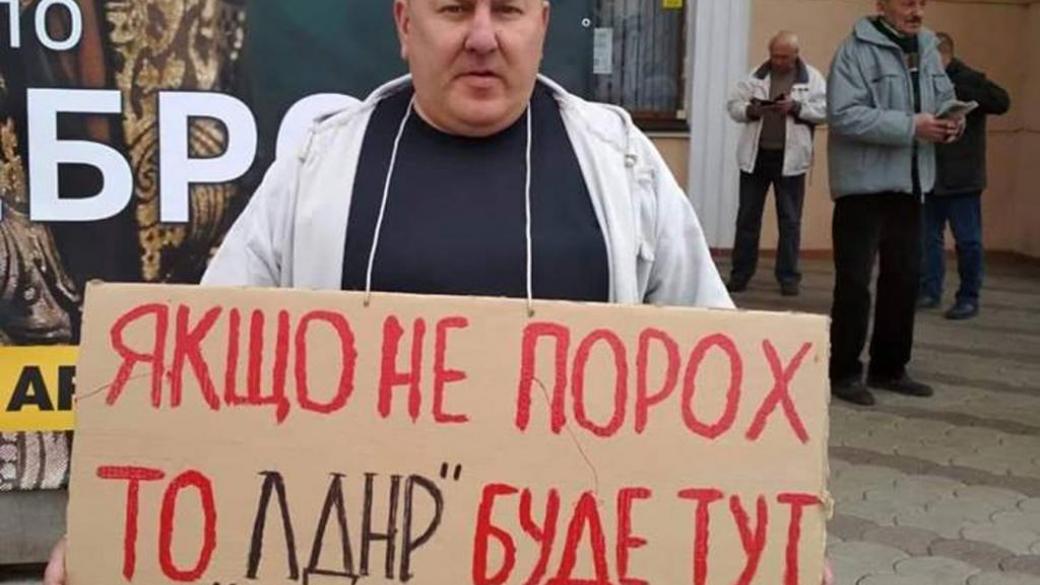 «Если не Порох, то „ЛДНР“ будет здесь. Я был в плену», — гласит надпись на плакате.