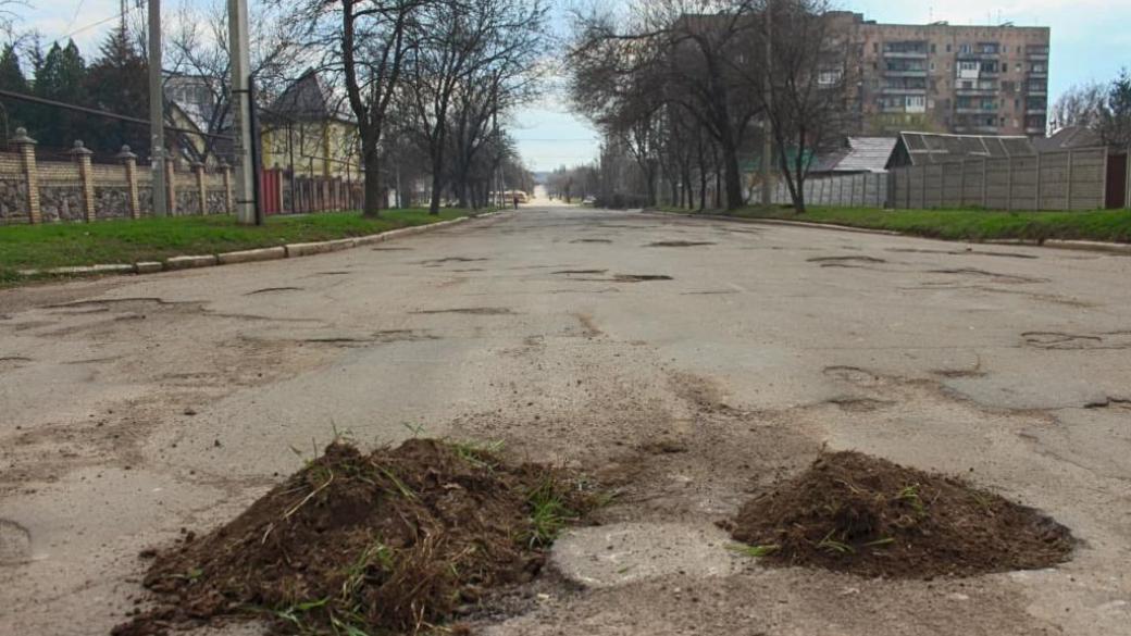 Жители неподконтрольной украинскому правительству Горловки продолжают бороться с дорожными ямами «народными способами».