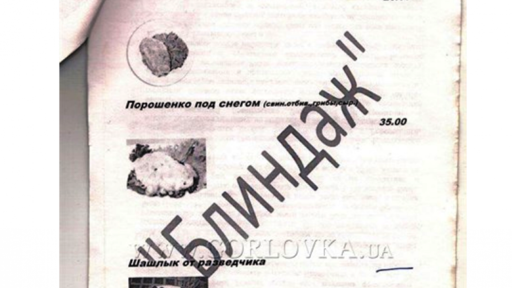 В одном из ресторанов оккупированной Горловки, под названием «Блиндаж», захваченном боевиками в 2015 году, подавали на ужин «Ребра Ляшко», «Порошенко под снегом» и «Тайского партизана».