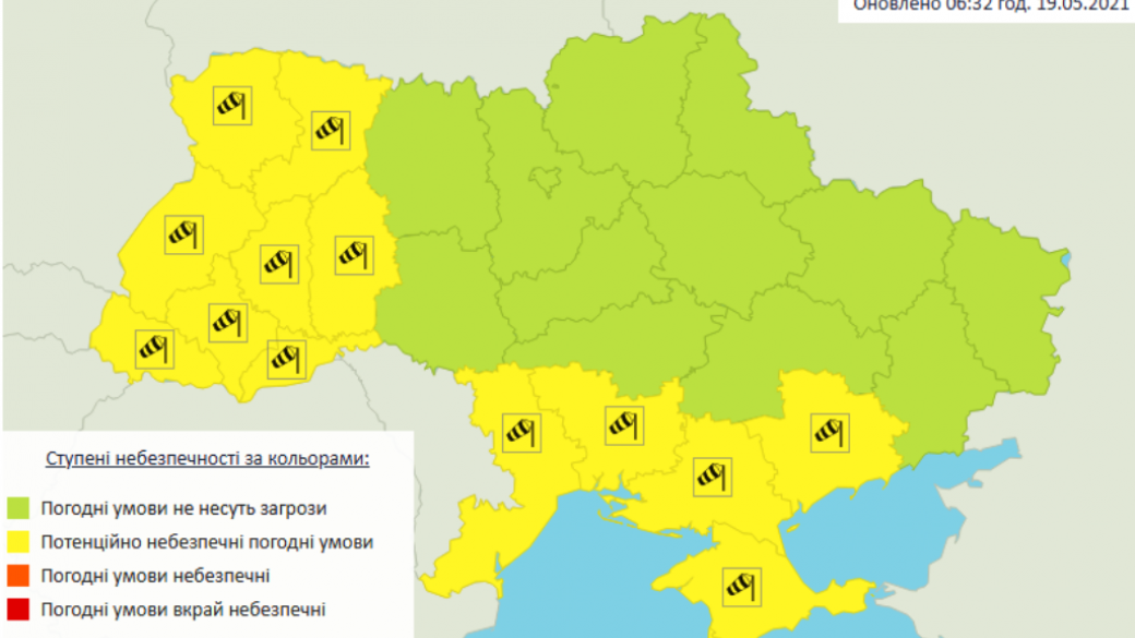В Украине на 19 мая объявили штормовое предупреждение І уровня опасности из-за опасных метеорологические явлений погоды — сильного ветра. Об этом сообщает пресс-служба Государственной службы по чрезвычайным ситуациям со ссылкой на прогноз Укргидрометцентра.