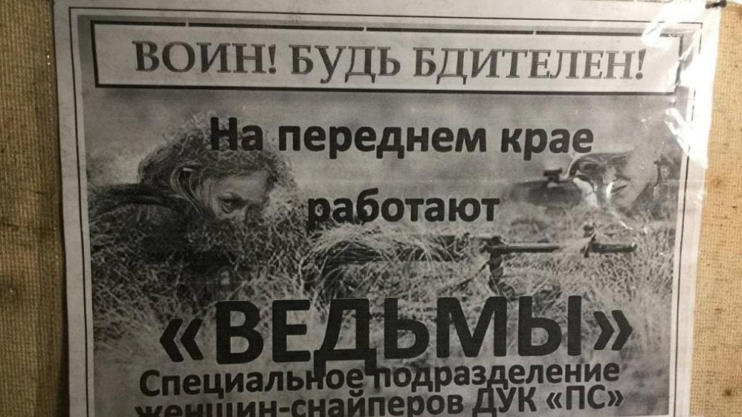 Также он добавил, что причиной потерь НВФ являются украинские снайперы и публикует листовку украинских военных, в которой бойцы ДУК «Правый сектор» напоминают НВФ о том, что «ЛДНР» противостоят украинские женщины-снайперы из подразделения «Ведьмы». Сладков пишет: