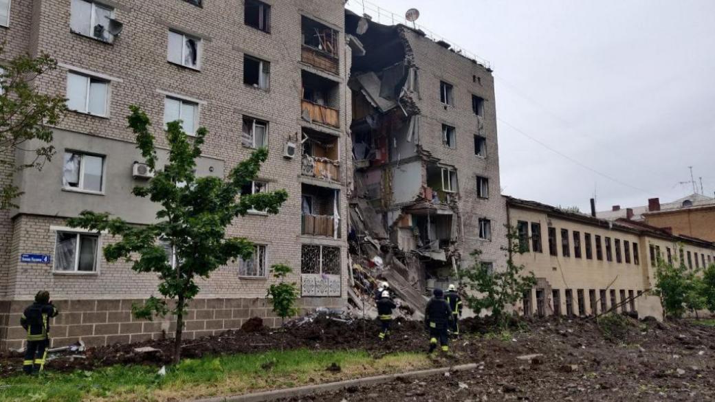 В пятиэтажке уничтожен целый подъезд, но, по предварительной информации, пострадавших нет.