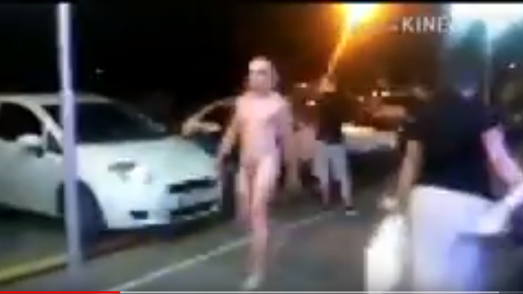 В Чугуеве Харьковской области прохожие сняли на камеру голого мужчину, пристающего на улице к девушкам.