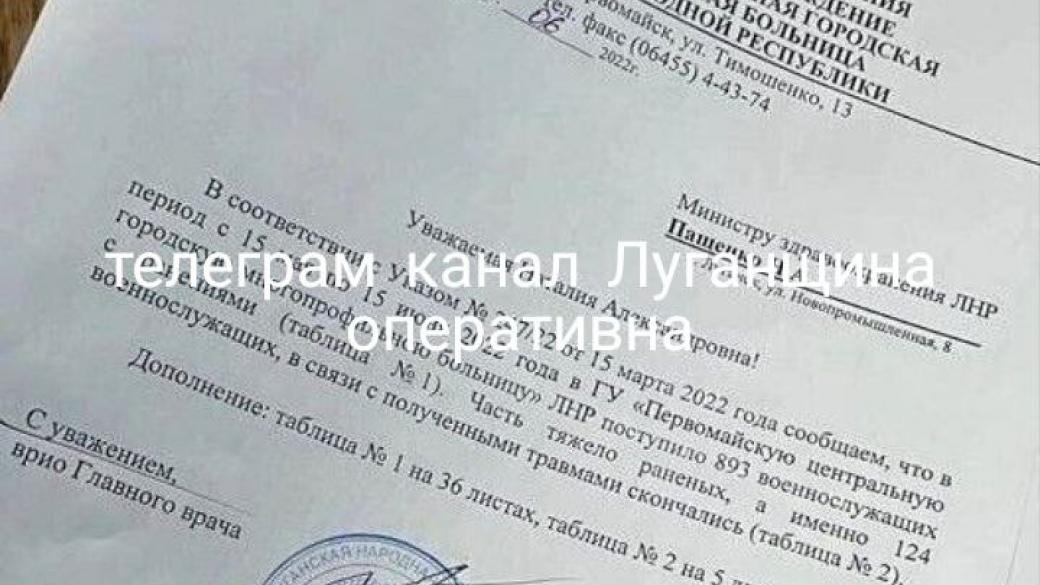 «Публикуем списки военных окупационных войск России и „ЛНР“ которые принимали участие в военных действиях против Украины и получили ранения или были уничтожены нашими военными, после чего были доставлены в больницу г. Первомайска. Думаю пригодиться для идентификации тех кто убивал и разрушал города Украины», пишет автор канала.