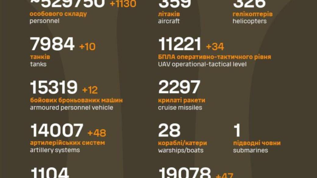 По сообщению Генштаба ВСУ общие потери оккупантов в войне составили: