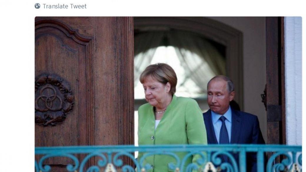 Один из снимков, сделанный сразу после окончания переговоров между Ангелой Меркель и Владимиром Путиным, привлек особенное внимание СМИ.