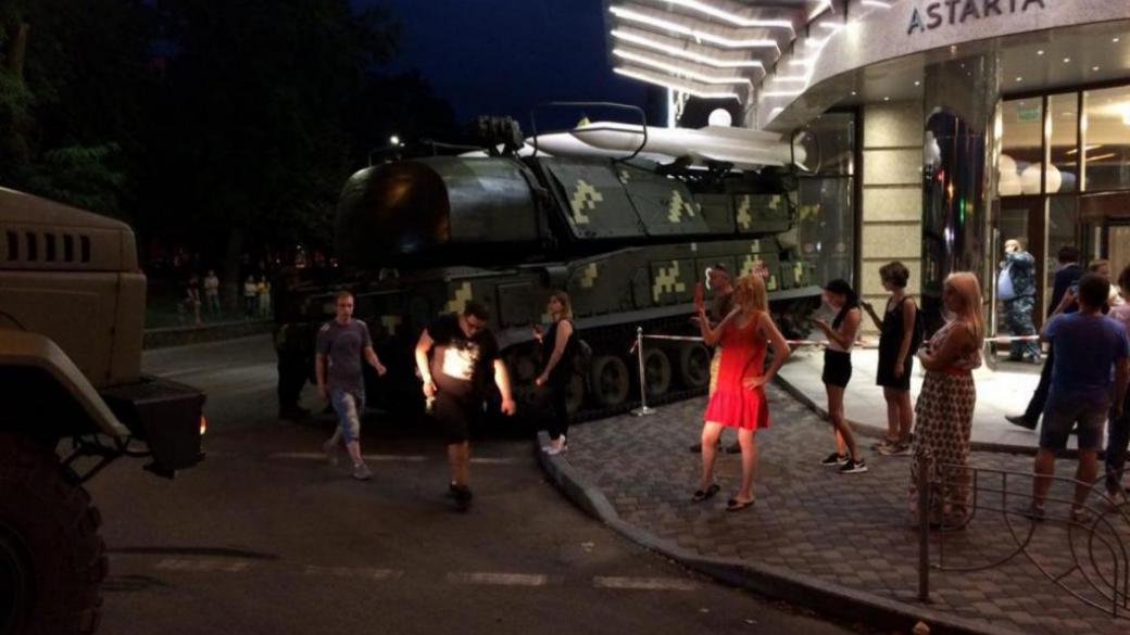 На улице Ярославской в Киеве в здание бизнес-центра Astarta врезалась зенитная установка «Бук». Машина принимала участие в репетиции военного парада ко Дню независимости.