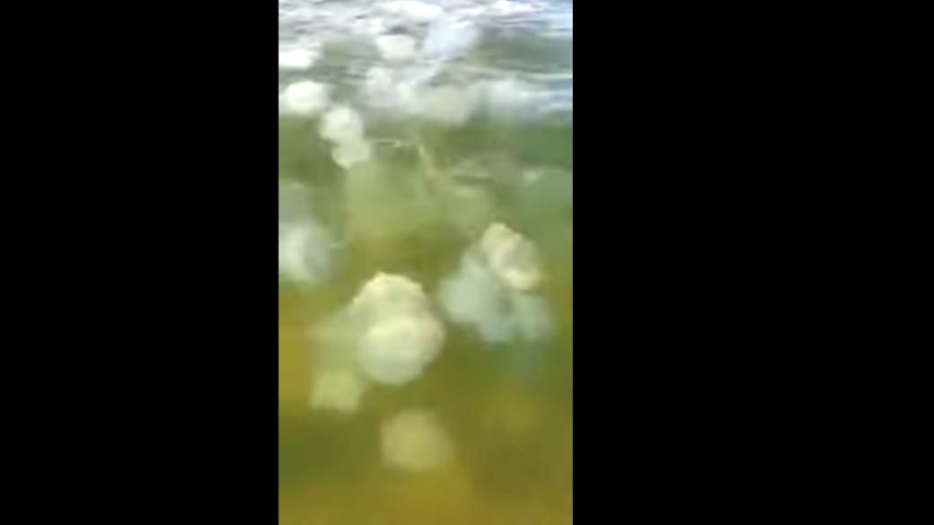 В ролике показано, что медуз огромное множество, что очень мешает туристам и не дает возможность нормально купаться.