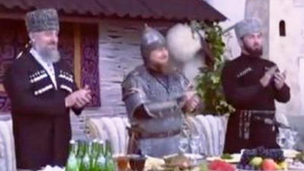 Видео на котором запечатлен глава Чечни Рамзан Кадыров на торжественном приеме в Грозном в шлеме, с мечом и копьем вызвало большой интерес у пользователей социальных сетей.