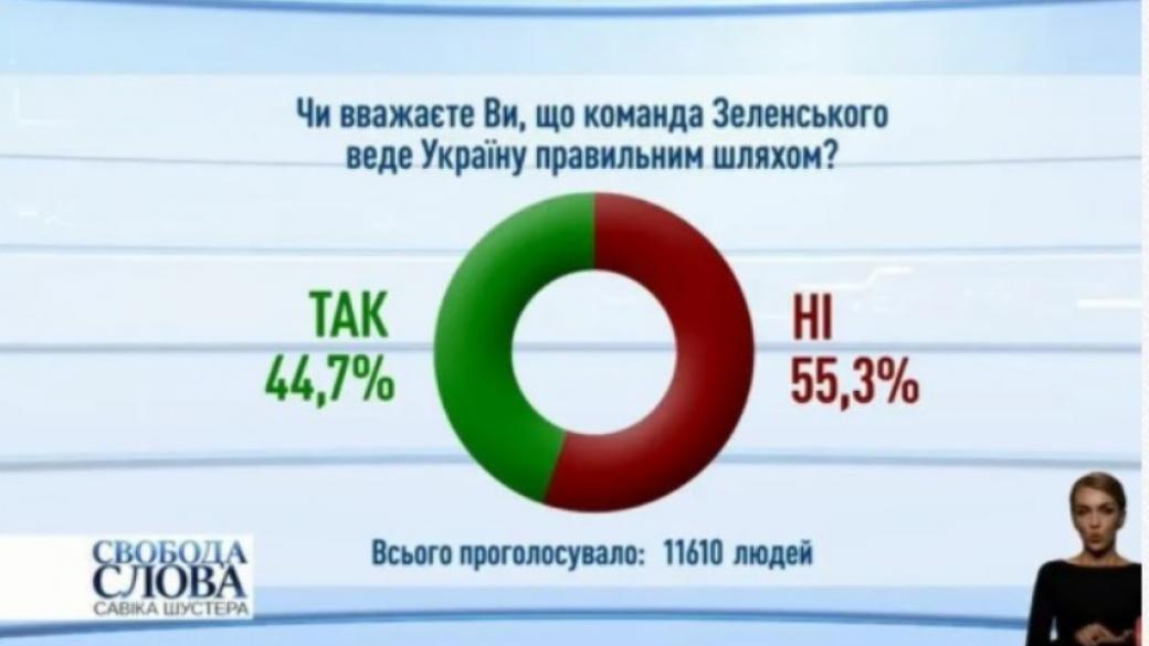 Зрителям был задан вопрос: «Считаете ли Вы, что команда Зеленского ведет Украину правильным путем?».