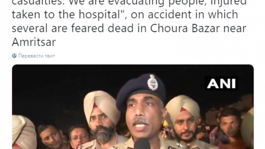 В Индии в городе Амритсар пассажирский поезд въехал в толпу людей, в результате чего погибли более 50 человек. Об этом сообщает ANI.