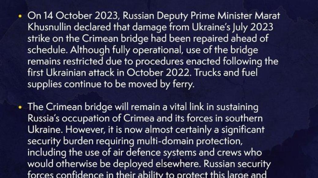 По данным британской разведки, Крымский мост будет находиться под угрозой из-за находчивости украинских спецслужб и военных.