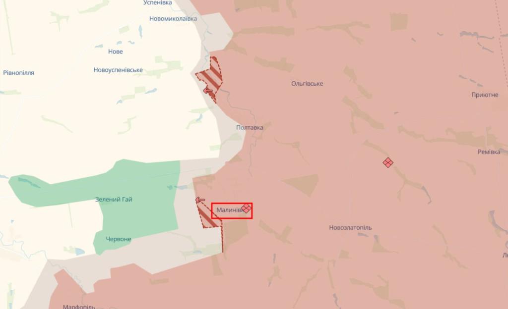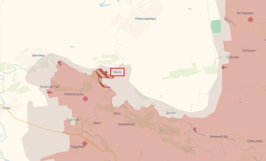 Российские войска продвинулись возле села Филия в Днепропетровской области. В Запорожской области зафиксировано продвижение оккупантов в Охотничьем и в районе Малиновки. Об этом сообщили аналитики информационного ресурса DeepState.