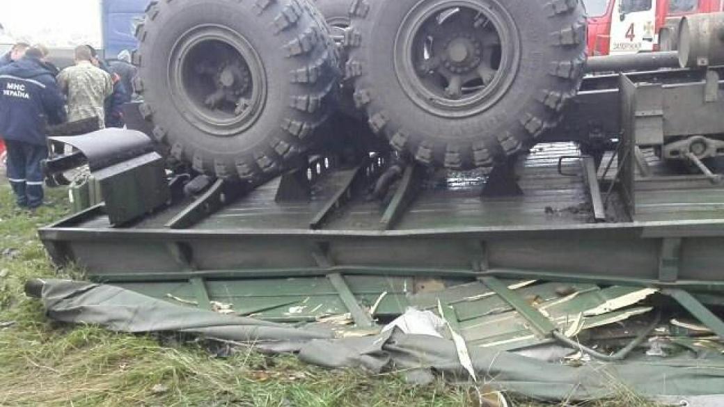 В Запорожье сегодня утром на пересечении ул. Димитрова и Симферопольского шоссе перевернулся военный грузовик.