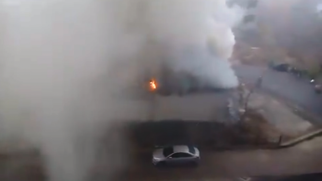 По словам дончан, сильный дым поднимается из-за здания бывшего супермаркета «Амстор», люди пишут: