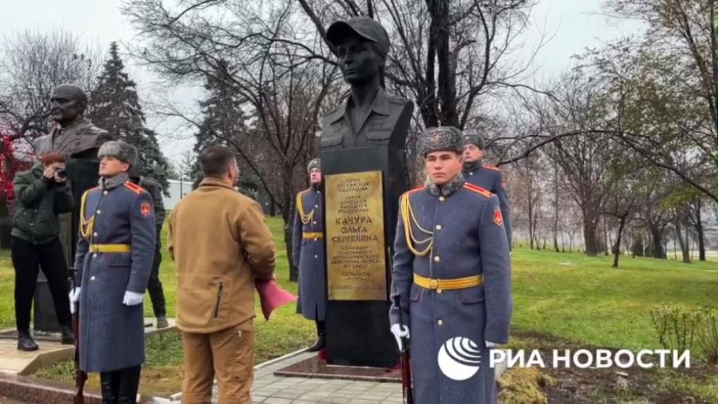 В этот раз, по словам Ольги Поздняковой, директора фонда," благодаря" которому и появилась в Донецке так называемая "аллея героев". установлен памятник Ольге Кочуре с позывным "Корса", который стал седьмым на ней.