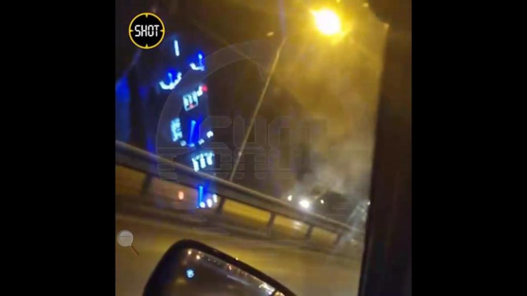 Момент взрыва неизвестного беспилотника в пригороде Москвы попал на видео.