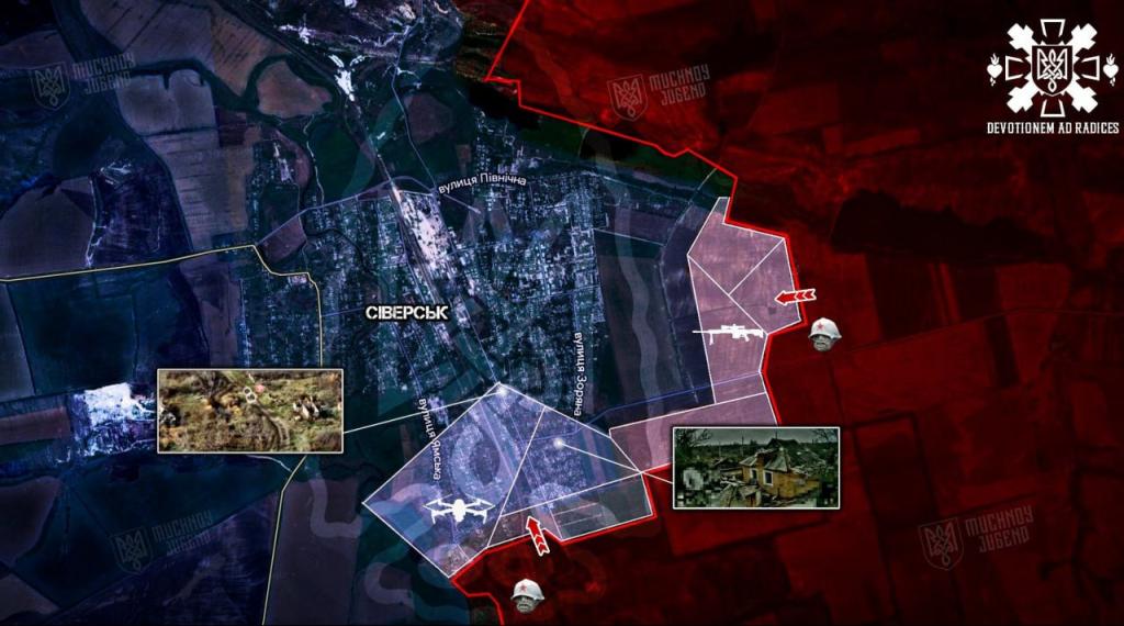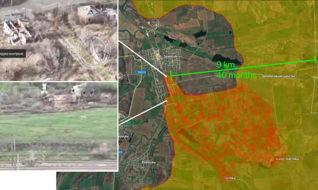 Он пишет, что армия рф прорвала оборону в районе Северска. Россияне захватили село Выемка и Ивано-Дарьевка, а затем зашли в Северск с юга и уже заняли 20% его территории.