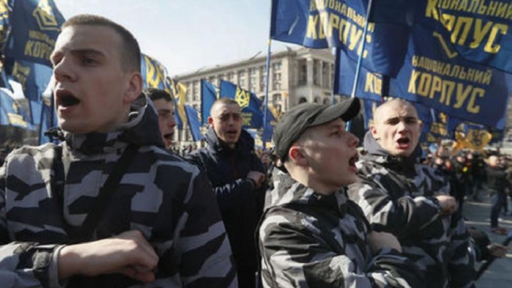 Сегодня, в столице Украины, около тысячи представителей партии Национальный корпус перекрыли движение транспорта по главной улице столицы — Крещатику.