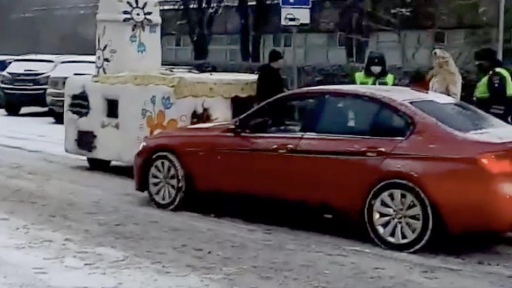 В Москве на улице Николая Коперника произошло ДТП с участием BMW и русской печкой. Видео инцидента опубликовал в соцсети очевидец происшествия.