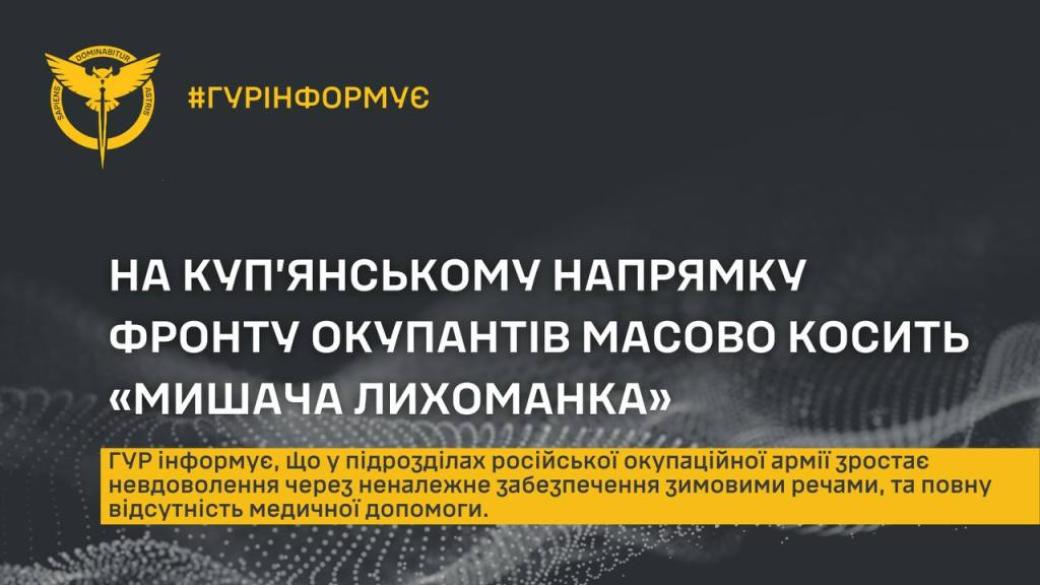 Главное управление разведки Министерства обороны Украины рассказывает, что в подразделениях российской оккупационной армии растет недовольство из-за ненадлежащего обеспечения зимними вещами и полного отсутствия медицинской помощи.