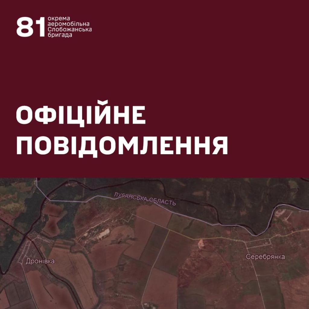 Информация о захвате российскими войсками населенных пунктов Серебрянка и Дроновка не соответствует действительности. Об этом сообщили в 81 отдельной аэромобильной Слобожанской бригаде ДШВ ВСУ.