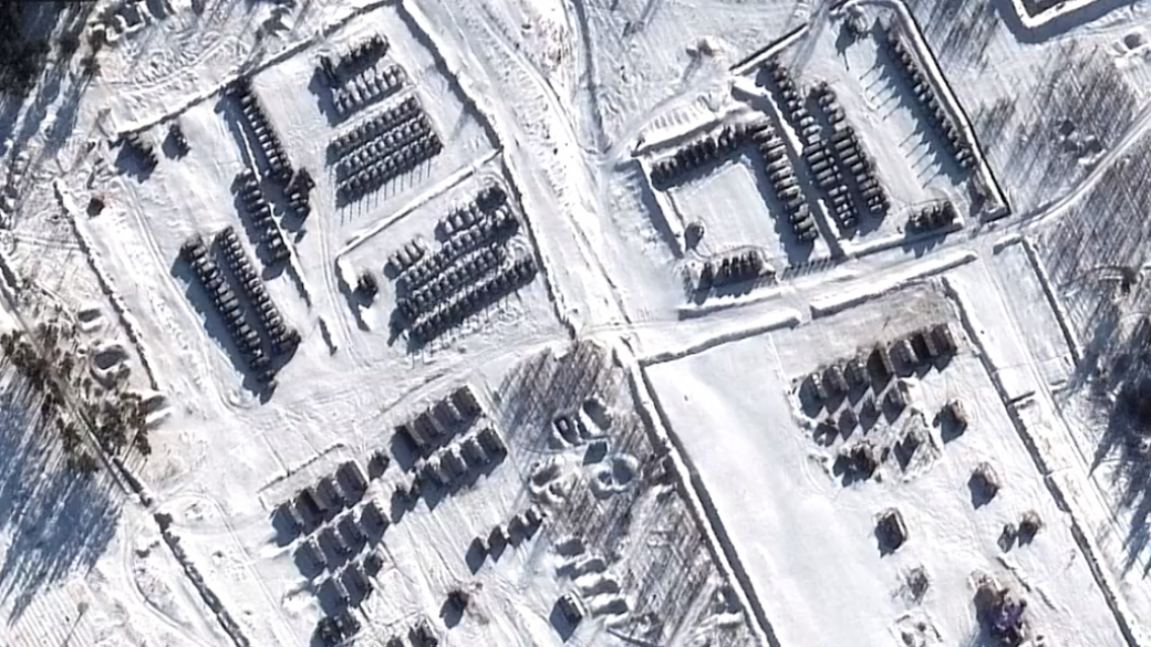 «Спутниковые снимки Maxar Technologies показывают, что Россия собирает около 100 000 военнослужащих у границ Украины, что, по словам Запада, является подготовкой к войне, чтобы предотвратить вступление Украины в западный альянс безопасности НАТО».