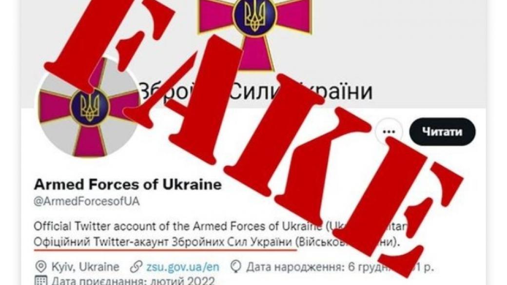 Аккаунт @ArmedForcesofUA позиционирует себя как «официальный Twitter-аккаунт Вооруженных Сил Украины». Он зарегистрирован в феврале 2022 года. Страница в настоящее время имеет более 300 читателей. Авторы ведут ее на английском языке.