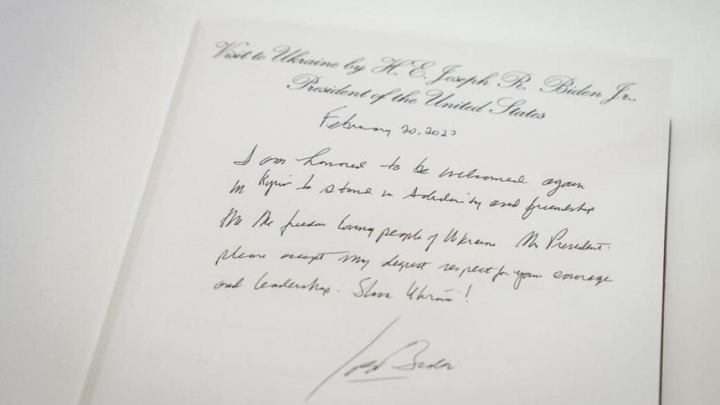 "Для меня большая честь снова прибыть в Киев, чтобы выразить солидарность и дружбу с свободолюбивым народом Украины. Господин президент, примите мое глубокое уважение за ваше мужество и лидерство. Слава Украине!", - написал президент США.