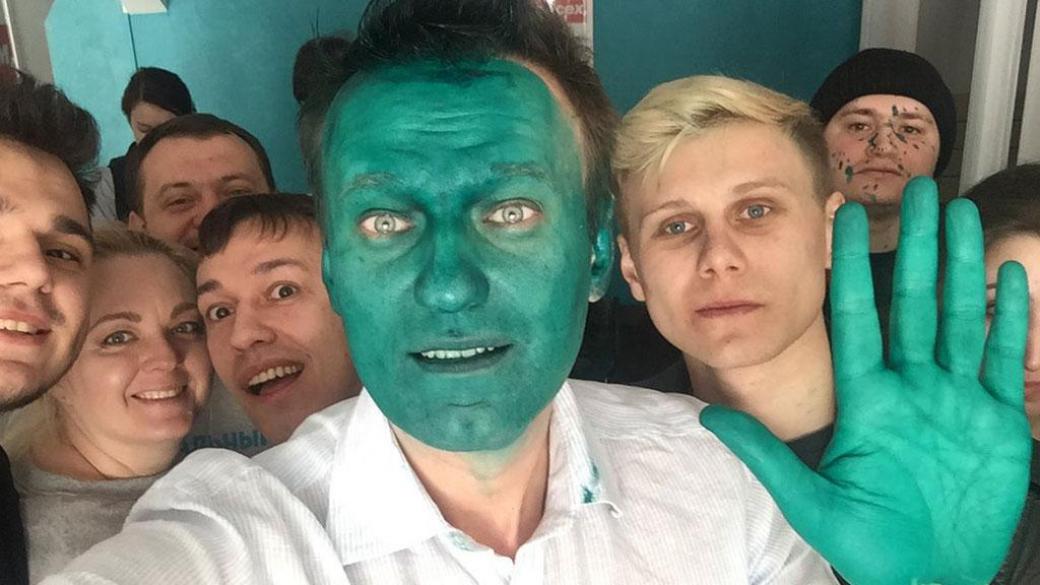 Лидера российской оппозиции Алексея Навального, по прибытии в Барнаул для открытия волонтерского штаба и выступления перед местными жителями, неизвестный облил зеленкой.