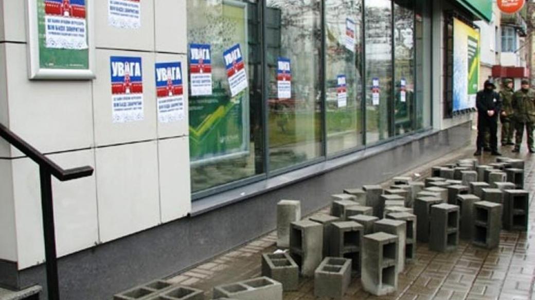 Активисты «Гражданского корпуса Азов» сегодня заблокировали работу Сбербанка РФ на улице Стуса в Краматорске Донецкой области.