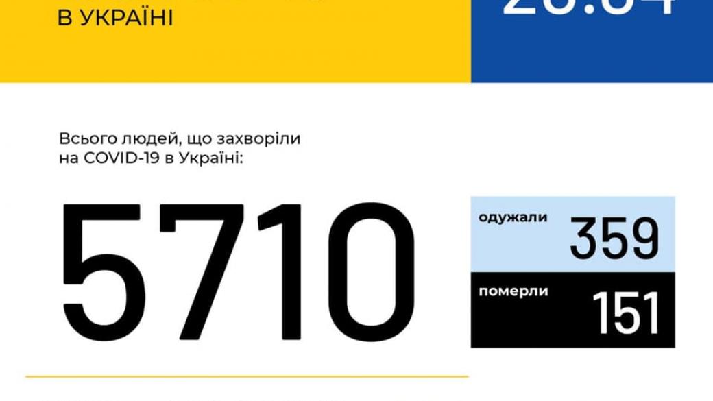 В Украине по состоянию на 09:00 20 апреля зафиксировано 5710 случаев коронавирусной болезни COVID-19. Об этом сообщает пресс-служба Минздрава Украины.