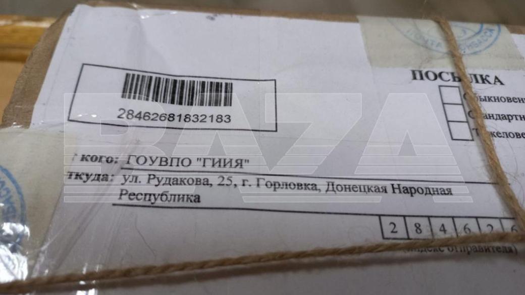 Отправителем значился Горловский институт иностранных языков имени Крупской, который находится в оккупированной с 2014 года Горловке.