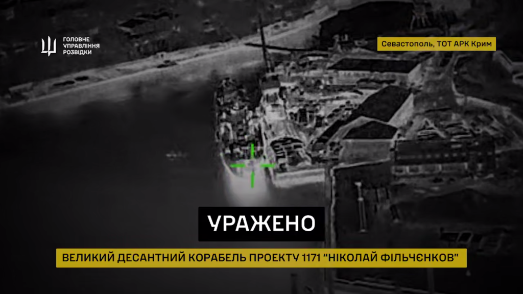 Успешные удары пришлись по двум большим десантным кораблям – ВДК проекта 775 "Ямал" и ВДК проекта 1171 "Николай Фильченков" в оккупированном Крыму.