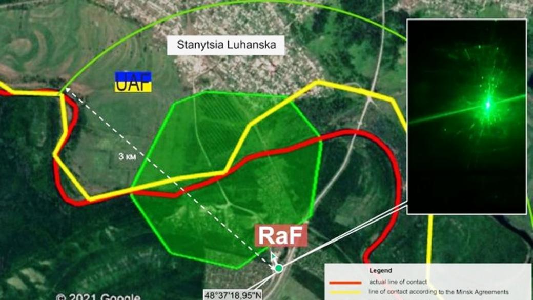 «10−16 мая украинские военнослужащие вблизи Станицы Луганской столкнулись с применением российскими вооруженными формированиями мощного излучателя света. Это могли быть так называемые ослепляющие лазеры российского производства».